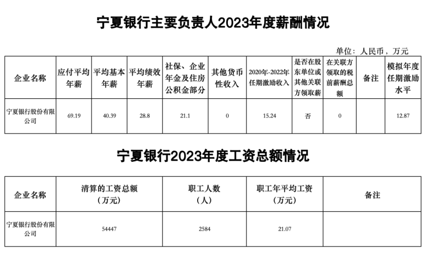 ?按照《自治區人力資源和社會保障廳關于做好2023年區屬國有企業工資分配情況備案和信息披露工作的通知》要求,現將寧夏銀行2023年度主要負責人薪酬和工資總額信息予以公示。