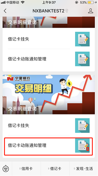 寧夏銀行微信借記卡動賬通知便捷上線!