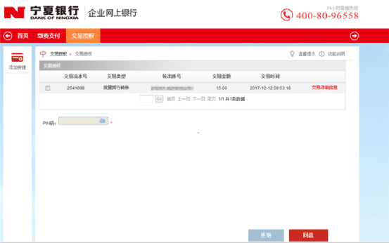 4、進(jìn)入確認(rèn)頁(yè)面,查看收款信息是否正確,無(wú)誤后請(qǐng)輸入證書(shū)pin碼,點(diǎn)擊“確認(rèn)”